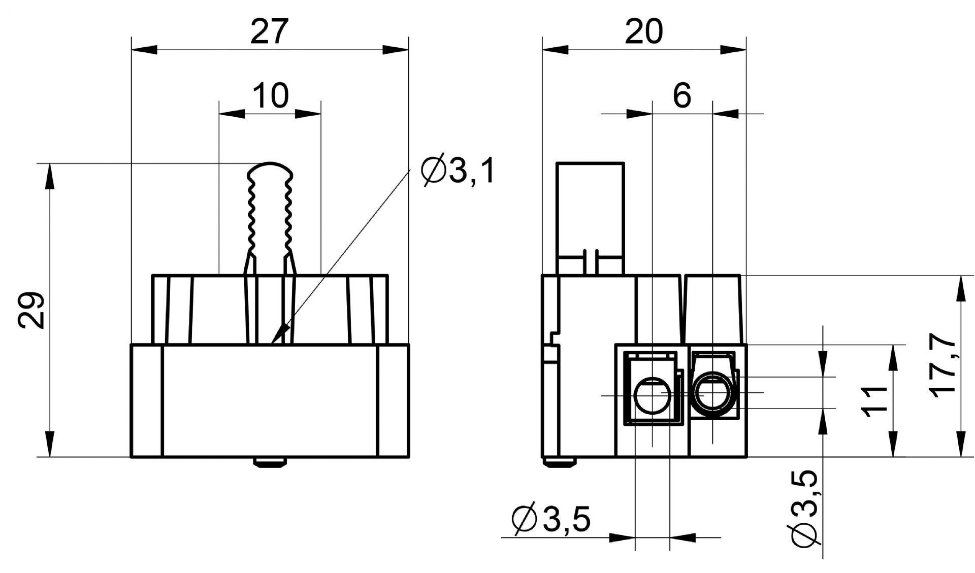 Regleta de conexión con Portafusible